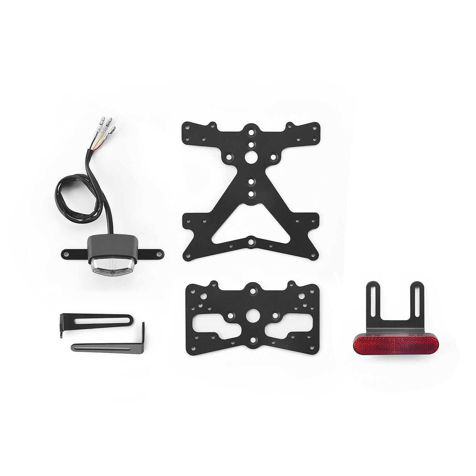 Made from aluminum, each Fox license plate kit is specifically designed for a corresponding motorcycle model. This means it matches the motorcycle styling perfectly and is quick and easy to install. Each kit actually includes everything required to fit it without requiring any modifications to OEM parts. Great functionality plus maximum compactness, but always in complete compliance with legal requirements. Fox kits include an SMD LED license plate light, reflector and Rizoma turn signal supports. They are adjustable and supplied with a safety lock to ensure the correct tilt.