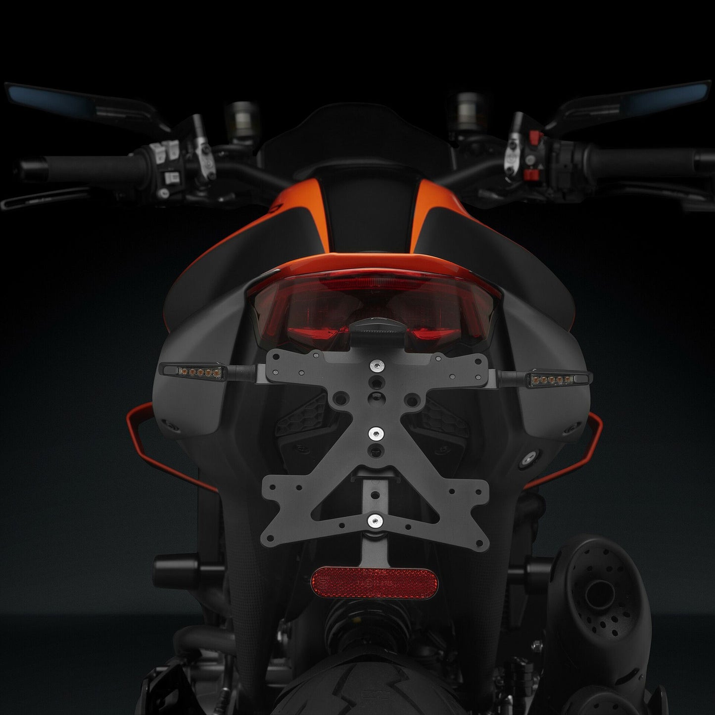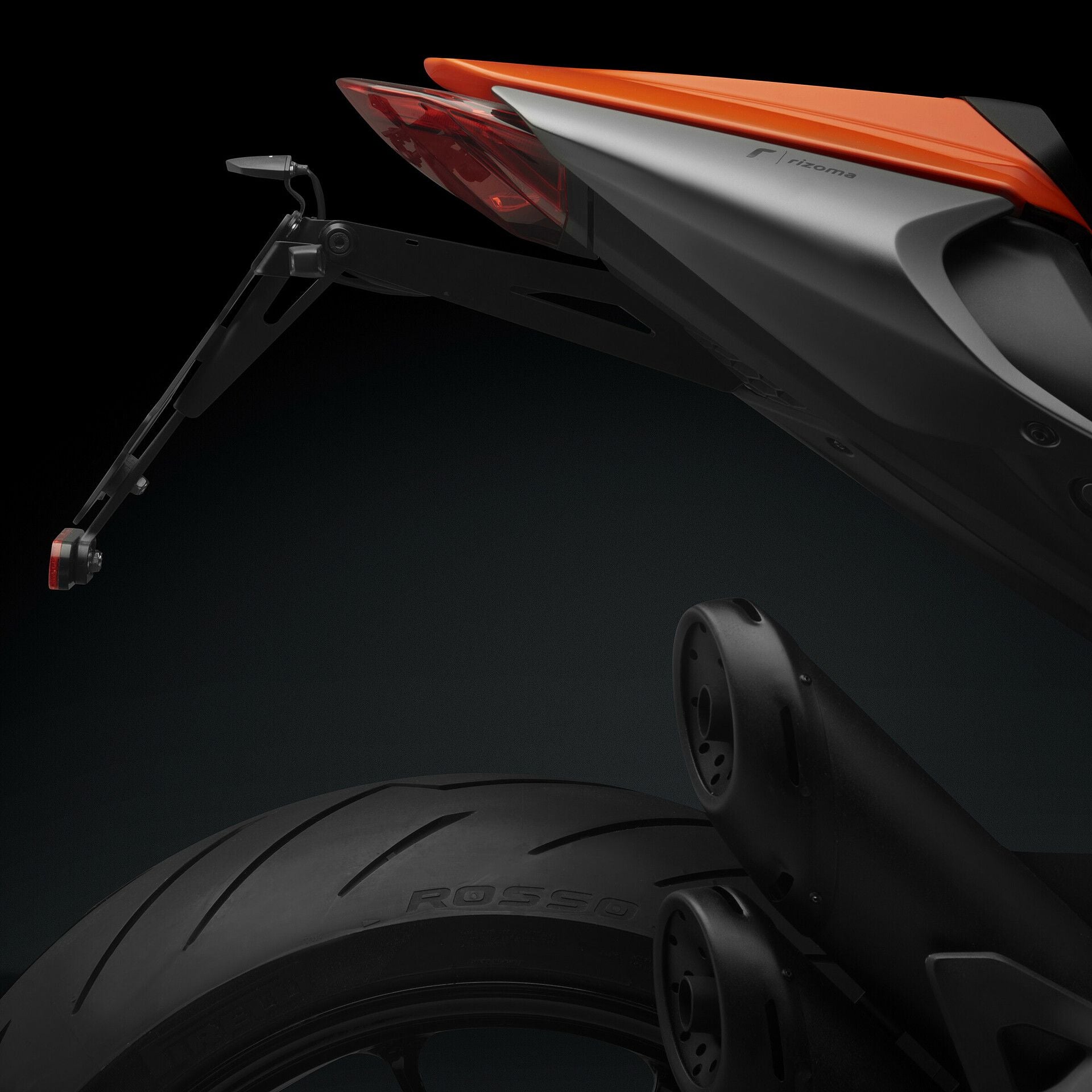 Made from aluminum, each Fox license plate kit is specifically designed for a corresponding motorcycle model. This means it matches the motorcycle styling perfectly and is quick and easy to install. Each kit actually includes everything required to fit it without requiring any modifications to OEM parts. Great functionality plus maximum compactness, but always in complete compliance with legal requirements. Fox kits include an SMD LED license plate light, reflector and Rizoma turn signal supports. They are adjustable and supplied with a safety lock to ensure the correct tilt.