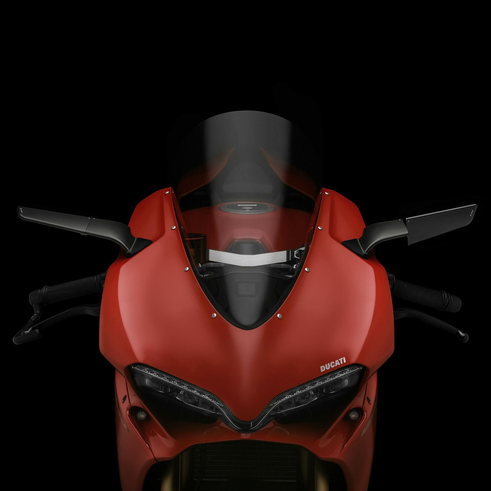 While the mirror glass holder is always the same, the fixed component is designed ad hoc for each supersport bikes for which Stealth was developed, looking for the best solution to match the relative aerodynamic results.