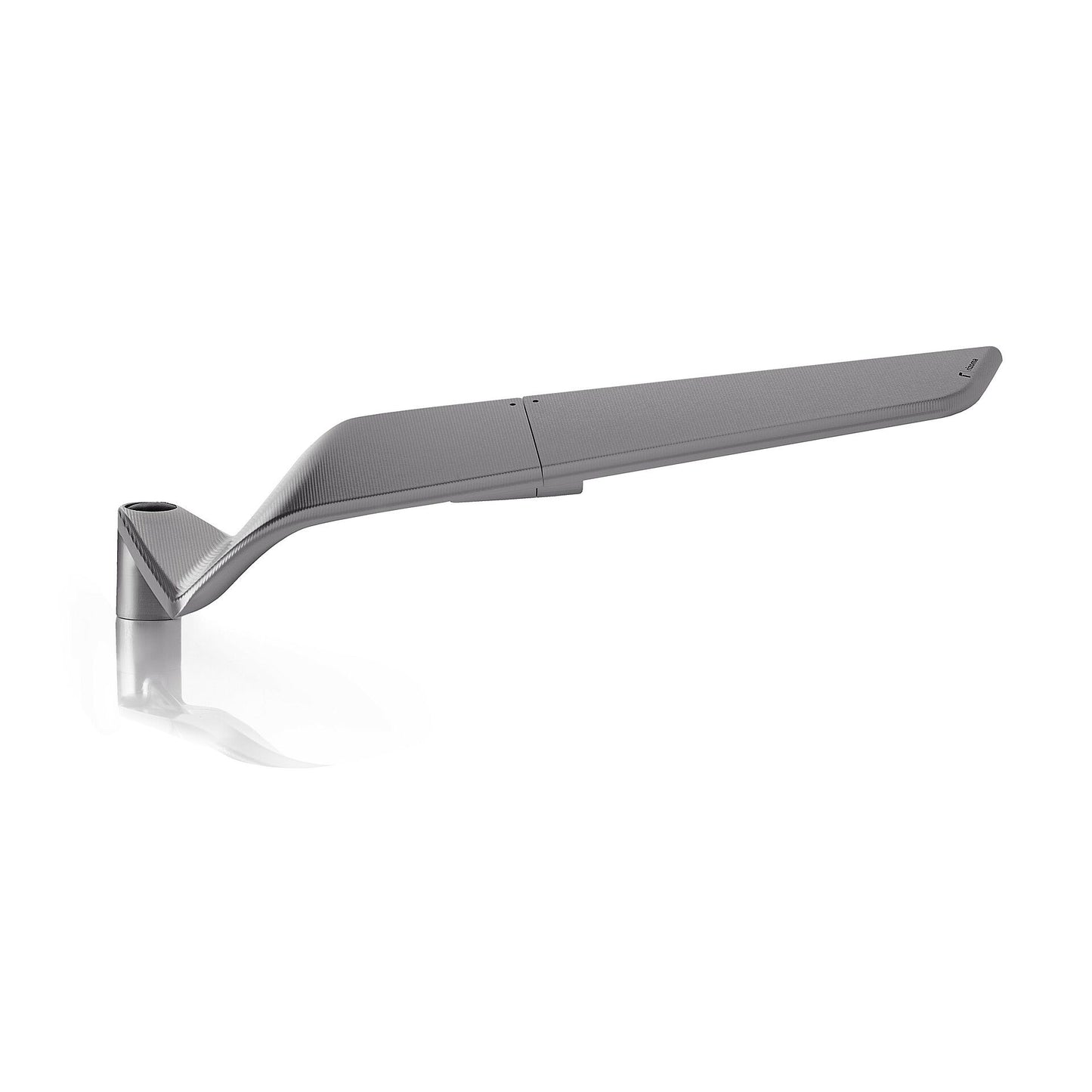 Unchanged the rotating system as well, that allows by a simple gesture to get aligned the two parts: in closed position the mirror becomes an aerodynamic wing to create downforce at high speed.