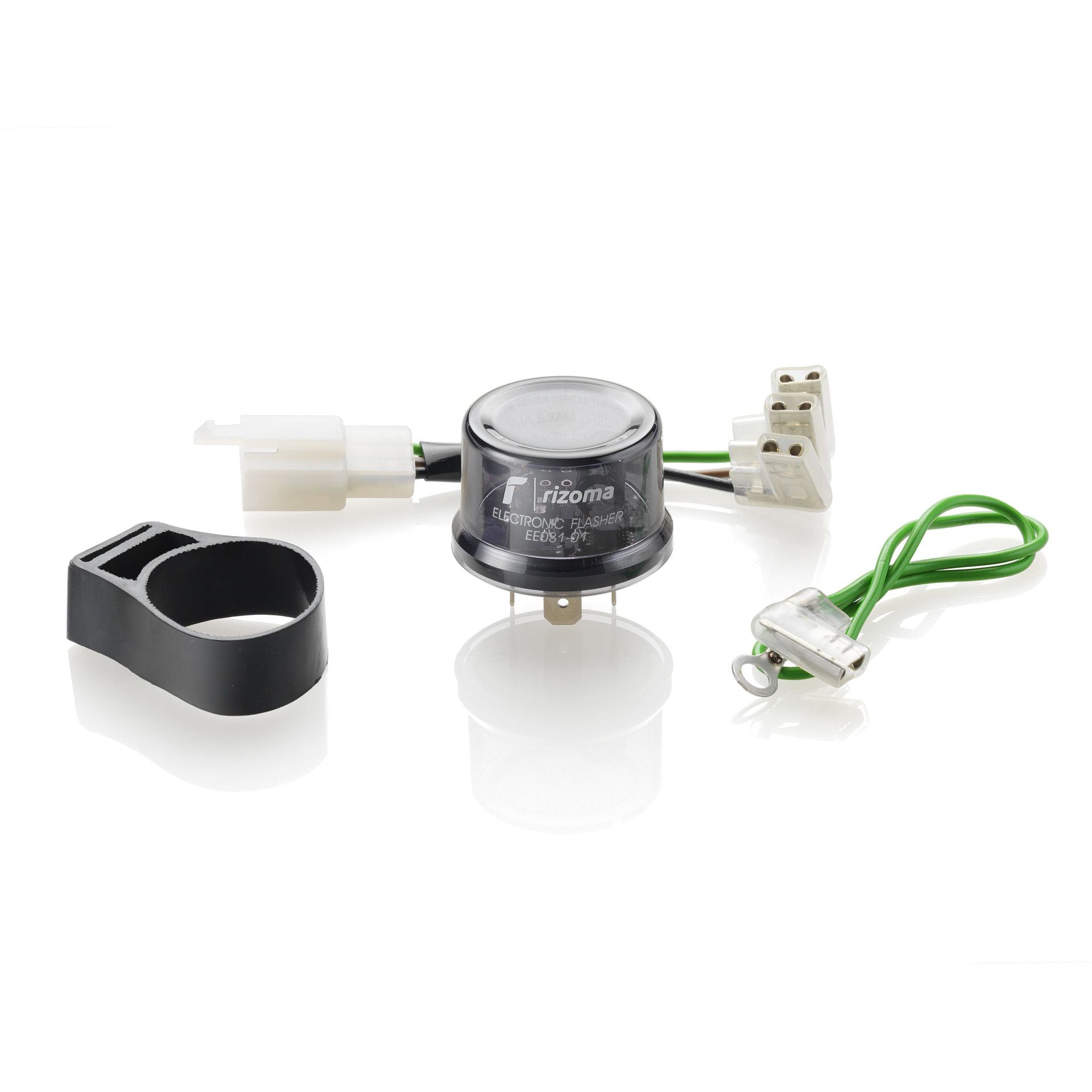 When fitting all four Rizoma turn signals, our technicians recommend replacing the OEM relay with our product EE031. This allows maintaining the correct flash frequency as with the original device, albeit with a different wattage. With use of the EE031 relay, there is no need to use the resistors included in the kit.