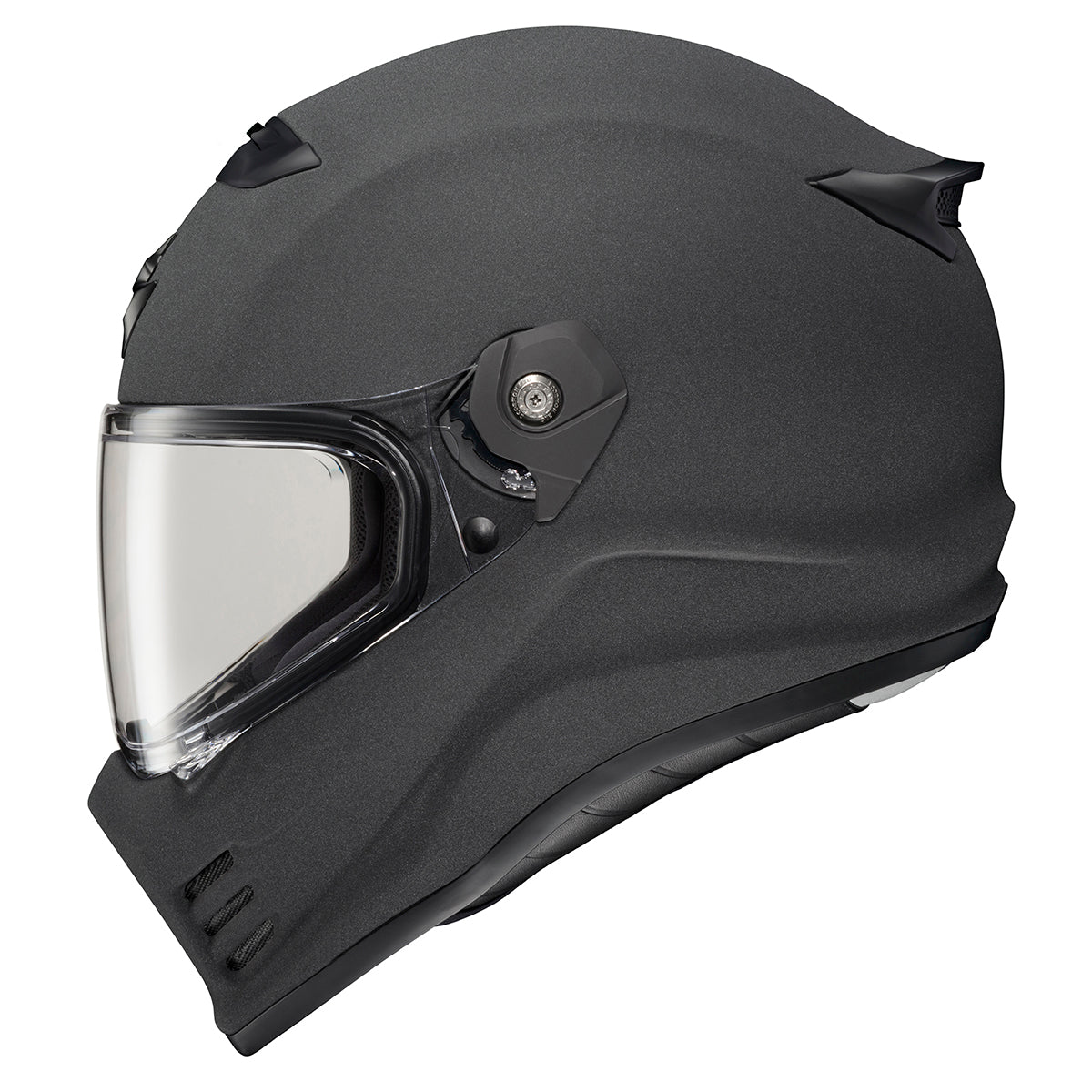 The Creators of the original bad-ass Covert Motorcycle Helmet have now developed a full-face version, the Covert FX! The Covert FX displays the same edgy style and function that is expected from the ScorpionEXO® Covert Series. However stylish the details may be, they have important function. Each helmet is carefully hand crafted using the latest Fiberglass, Aramid and Polyresin fibers which provide superior strength and extreme light weight. The low-profile shell has been aerodynamically tuned for motorcycle riding, minimizing both lift and turbulence for a smoother, quieter, and more stable ride. Integrated speaker pockets make it easy to install your favorite Bluetooth® communication device, while the KwikWick III comfort liner features a moisture wicking material that will keep you cool, dry and comfortable during your ride. ScorpionEXO® continues to set the standard when it comes to value in a motorcycle helmet by including a Free Dark Smoke Shield, as well as a Clear shield, right out of the box. If you’re looking for a stylish and functional motorcycle helmet that’s perfect for both city commutes and long-distance touring, look no further than the Covert FX.