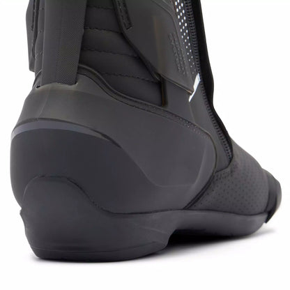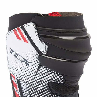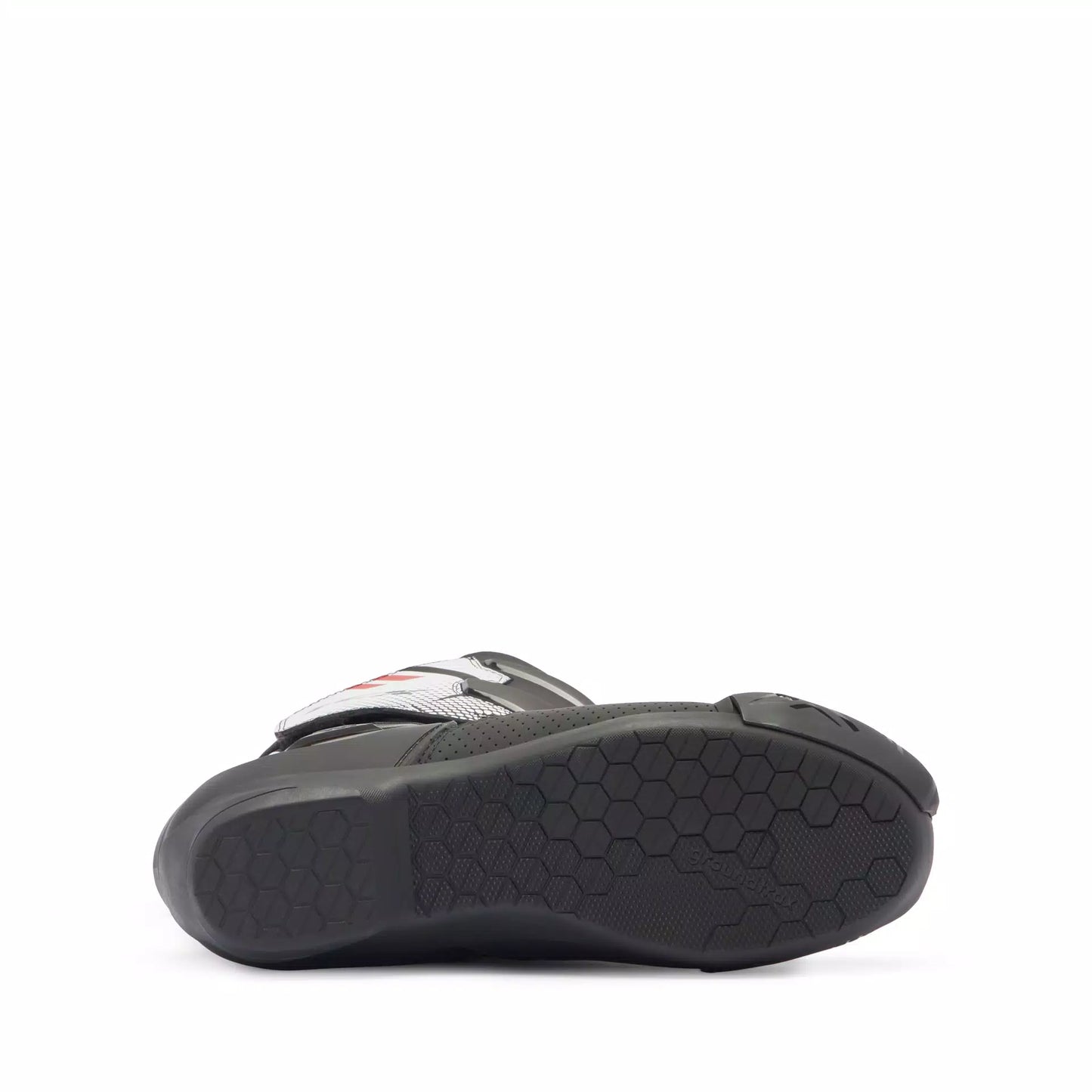 Blending TCX's high-quality standards and maximum protection, S-TR1 Air are the new sports boots designed to protect foot, joint and shin – the perfect balance between safety and comfort. Ventilation is optimized by the perforated upper and the front joint in breathable mesh fabric with integrated hot-melt bands – for optimal comfort even at high temperatures. Front protection is guaranteed by the upper construction in rigid TPU structure and lower soft padding – an innovative and functional design for padded shin protection resulting in boots boasting excellent flexibility. The TCS® (Torsion Control System) – specially designed to accompany the ankle as it moves through its optimal range of action – guides the movement of the foot joint, thus avoiding the risk of unwelcome twisting, hyper-extension and hyperflexion. The Groundtrax® sole boasts a specially designed tread that ensures perfect grip on the motorcycle’s controls as well as on asphalt, in all weather conditions.